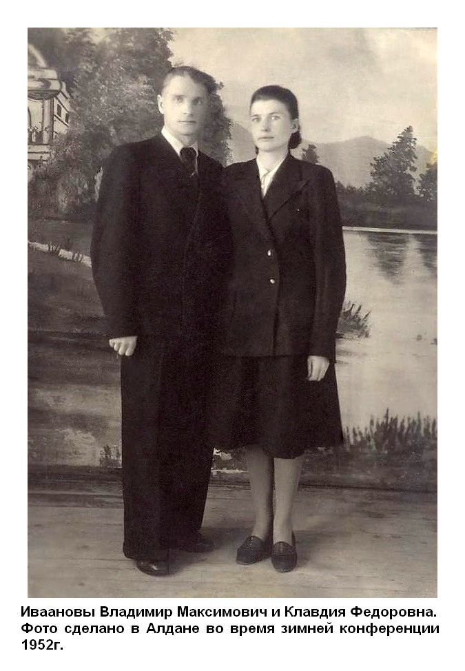 Иванов Владимир Максимович родился 8 октября 1923 г. в крестьянской семье, в селе Брусьянино Новосибирской области. В 1933 г., будучи ребенком, он переехал вместе с родителями в Якутию. У Владимира был старший брат, но, заболев, он умер, вскоре серьезно заболел и сам Владимир. Он попросил у матери купить гармошку и мать, продав юбку, исполнила просьбу сына. Во время болезни маленький Володя научился играть, и болезнь стала отступать. Именно тогда впервые проявился характер Володи – не отступать, бороться до победы. Владимир был очень любознательным, активным и разносторонне развитым молодым человеком. Во время учёбы в школе участвовал в районных смотрах и неоднократно занимал призовые места, был лидером среди ребят.