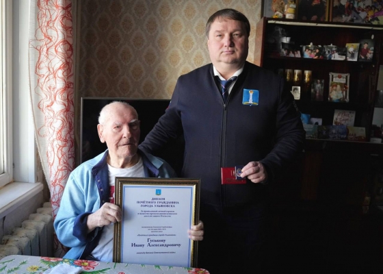 Глава Ульяновска Александр Болдакин вручил знак Почётного гражданина Ульяновска ветерану Великой Отечественной войны Ивану Гуськову.