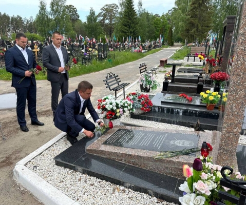 Сенатор РФ Айрат Гибатдинов, член ассоциации ветеранов СВО, вице-президент благотворительного фонда «За Победу!» Антон Шилов, депутат ЗСО Роман Султашов и участник СВО Владимир Михайловский возложили цветы к могиле погибшего героя.