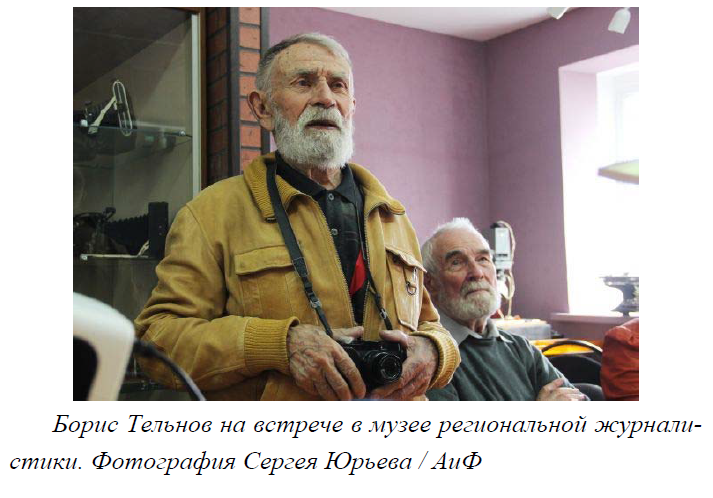 Фотограф Борис Тельнов: «В жизни надо учиться отделять главное от второстепенного и трудиться» Как завещал В.И. Ленин: «Учиться, учиться, и ещё раз учиться!». Этому правилу всю свою жизнь следовал фотограф Борис Тельнов. Его работы, словно окна в наше прошлое, которые останутся открытыми на века.