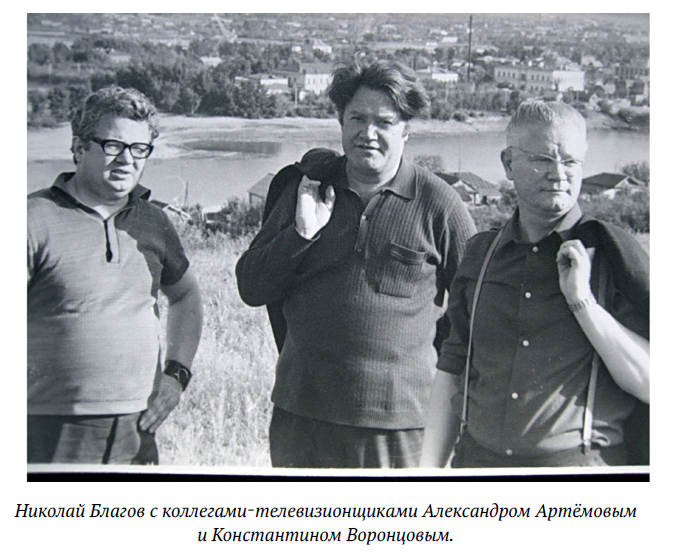 Знакомство наше состоялось летом 1962 года, когда я пришел работать на Ульяновскую студию телевидения, литературную редакцию там возглавлял Николай Благов. Меня с первой же встречи поразила тогда его богатырская фигура, широкое лицо, добродушное, как и его душа, его взгляд — то задумчивый, то с озорной с хитринкой. Во всей его натуре чувствовалась какая-то природная доброта, жизнерадостность и надёжность.