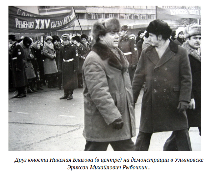 Дома у меня вместе рассортировали грибы, порезали белые и подосиновики на сковородку. Пока они жарились, полистали альбом с фотографиями, вспомнили прошлое. Благов рассказал о работе в Саратове: «Все там было хорошо, но тянуло на Волгу, первый секретарь Ульяновского обкома Скочилов домой переманил, условия хорошие для семьи создал».