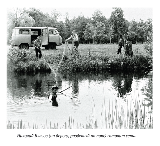 Он жил в своем бревенчатом доме, принял нас радушно. Рядом были усадебные постройки, а за огородом был выкопан маленький пруд. Хозяин поселил там мелочь, которую привозил с рыбалки. К обеду жена Трофимычева поставила на стол бутылку «Столичной» — хранила для самых дорогих гостей. Было видно, что Благова в этой семье любили: даже сын Трофимычева в школе писал сочинение по его стихам. После обеда хозяин решил поехать с нами. Благов попросил его: «Бредень не забудь!». Собирались долго, выехали уже под вечер. Благов предложил переночевать у озера, а утром ехать дальше: «Заодно и бредешком порыбачим!»
