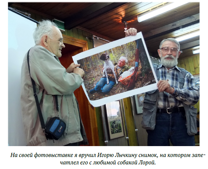 Любовь к фотографии и природе нас тесно сблизила с Игорем Лычкиным. Он с камерой и ружьем много поездил и побродил по лесам, полям и болотам. Тогда у него попутчицей и помощницей была спаниэль по кличке Дэзи. Я тоже любил рыбалку и охоту, у меня тогда был ирландский сеттер по кличке Рэд. Так что почва для общих интересов у нас с Игорем Лычкиным была, и дружба наша продолжалась всю жизнь.