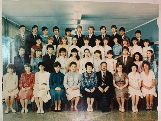 — 1985 год. Наш 10 «А» прощается с родной школой №5 в городе Ижевске. Рядом классный руководитель, учитель русского языка и литературы Валерий Петрович Созонов и другие педагоги. Они учили новому, радовались нашим успехам и поддерживали в трудную минуту. От выпускного — самые добрые воспоминания. Во время торжественной части мне вручили золотую медаль. Позже с друзьями встречали рассвет на набережной Ижевского пруда.