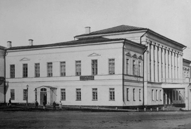 Боковой вход здания Дворянского собрания, до которого так и не дошёл губернатор Старынкевич, смертельно раненый бомбой, брошенной террористом, стоявшим у главного фасада