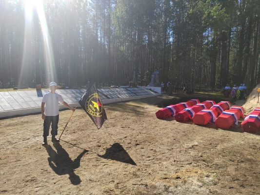 Торжественная церемония захоронения прошла на братской могиле советских воинов недалеко от поселка Повенец Медвежьегорского района Карелии. Участники Вахты почтили память воинов, погибших на Карельском фронте.
