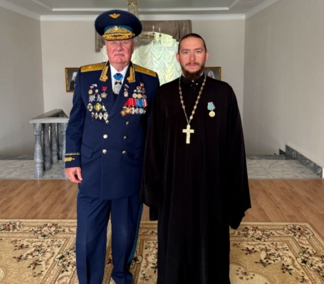 Памятную награду ему вручил генерал-майор ВДВ Вадим Орлов в присутствии руководителя епархиального отдела по взаимодействию с вооружёнными силами РФ протоиерея Сергия Кичигина.