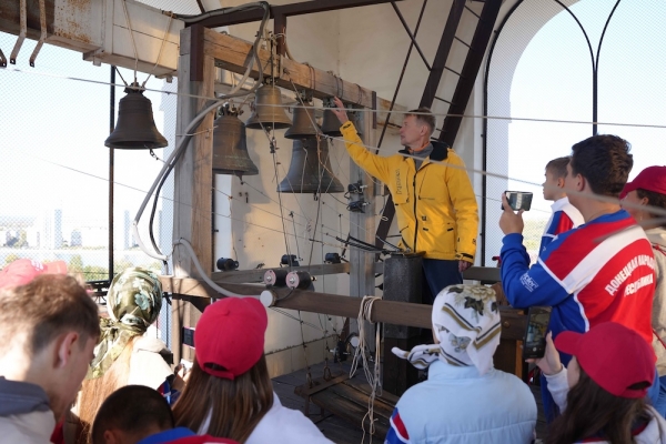 Затем ребята распределись на три группы. Ключарь собора иеромонах Иларион (Хроль) и руководитель епархиального молодежного отдела Сергей Николаев провели для них экскурсии по Спасо-Вознесенскому кафедральному собору и Всехсвятскому храму, рассказали об истории храмов и их святынях, а также о небесном покровителе города – блаженном Андрее Симбирском. Старший звонарь собора Глеб Кудасов продемонстрировал различные звоны на колокольне собора. Все участники экскурсии получили в подарок небольшие иконы.