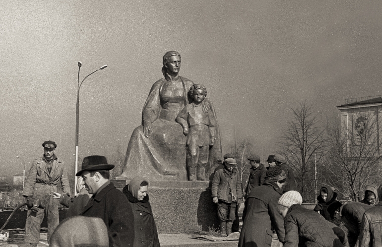 Установка памятника Марии и Володе Ульяновым в апреле 1970 года