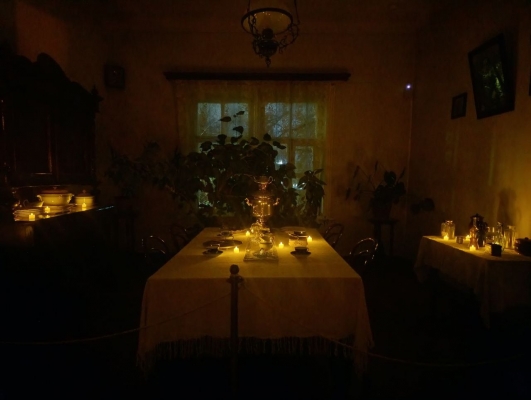 Решено было погасить в музее привычный верхний свет, оставив только техническое освещение и включив электрические свечи. В текст экскурсии добавили мистические истории, настроившие посетителей на нужный лад. Акцентом стало упоминание о том, что квартира Яковлева предстала перед гостями практически при аутентичном свете: в конце 19 – начале 20 веков яркого освещения не было, только приглушенный свет керосиновых ламп.