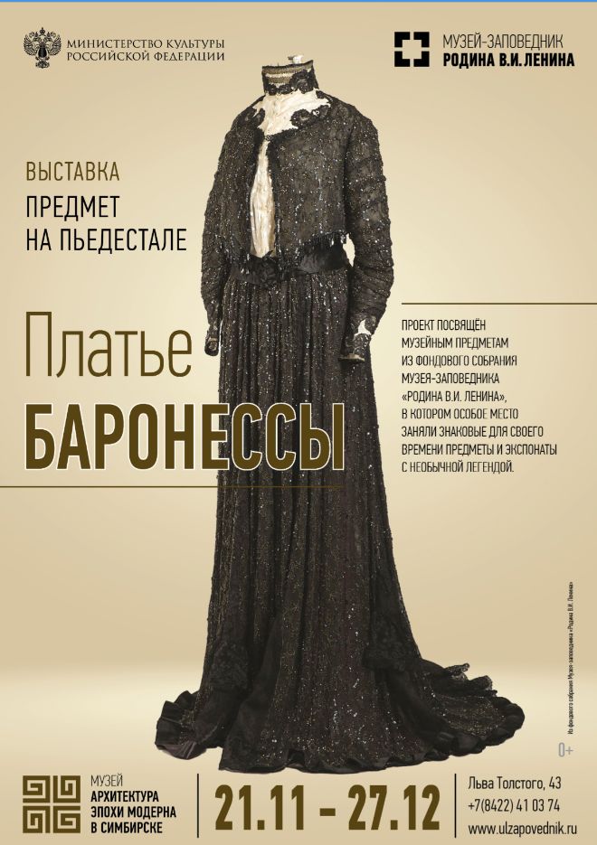 С 21 ноября в музее «Архитектура эпохи модерна в Симбирске», который находится на улице Льва Толстого, 43, будет работать выставка «Платье баронессы», которая является частью проекта «Предмет на пьедестале».