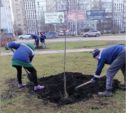 Деревья высаживали сотрудники Городского центра по благоустройству и озеленению.