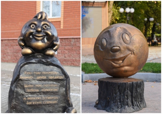 Бронзовый Колобок, который теперь украшает обновленный курский парк, подарок от Российской академии художеств. Автор скульптуры внук Зураба Церетели, а ныне президент РАХ Василий Церетели.