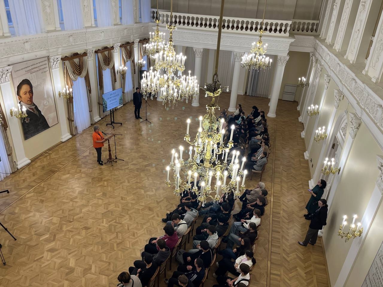В Торжественном зале библиотеки собрались студенты ульяновского фармацевтического колледжа и колледжа экономики и информатики. Ребят приветствовала заместитель департамента культурной политики министерства искусства и культурной политики Елена Куракова, которая отметила, что Ульяновская область остаётся центром притяжения для учёных и исследователей творчества Николая Карамзина.