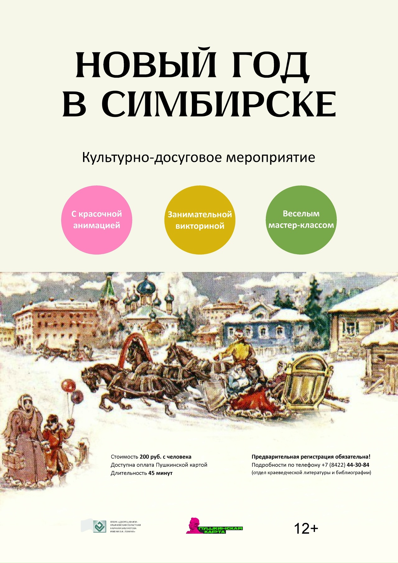 Участники программы «Новый год в Симбирске» через беседу, викторину и мастер-класс узнают, как симбиряне праздновали Новый год и Рождество 150 лет назад. Ребята и взрослые увидят уникальные фотографии 19 века из фонда Областной научной библиотеки имени В.И. Ленина.