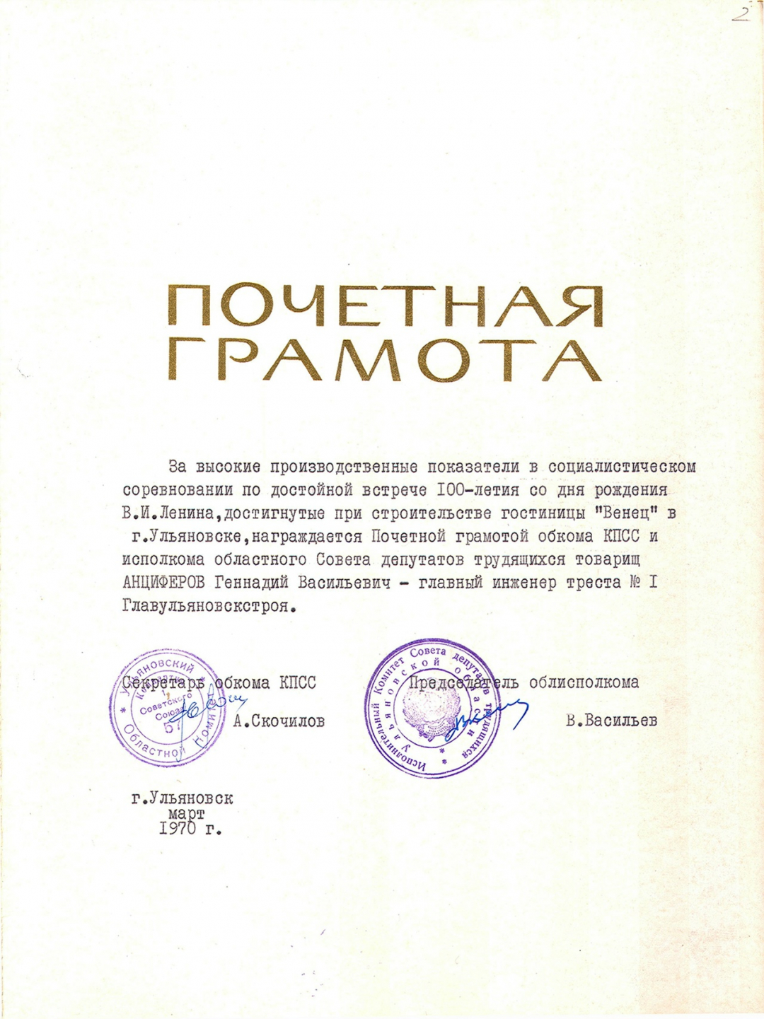 Его жизнь — это летопись советской инженерной школы и история преображения Ульяновска во второй половине XX века. Мы помним и чтим вклад этого выдающегося человека в наш город.