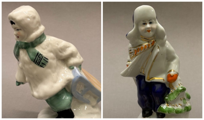 Популярность лыжного спорта нашла свое отражение и в искусстве. Фарфоровые фигурки лыжников делали на разных заводах. В коллекции Музея-заповедника «Родина В.И. Ленина» есть фигурка «Мальчик на лыжах», сделанная на Полонском заводе художественной керамики из той же серии «Счастливое советское детство» и фигурка «Лыжник» Ленинградского фарфорового завода.
