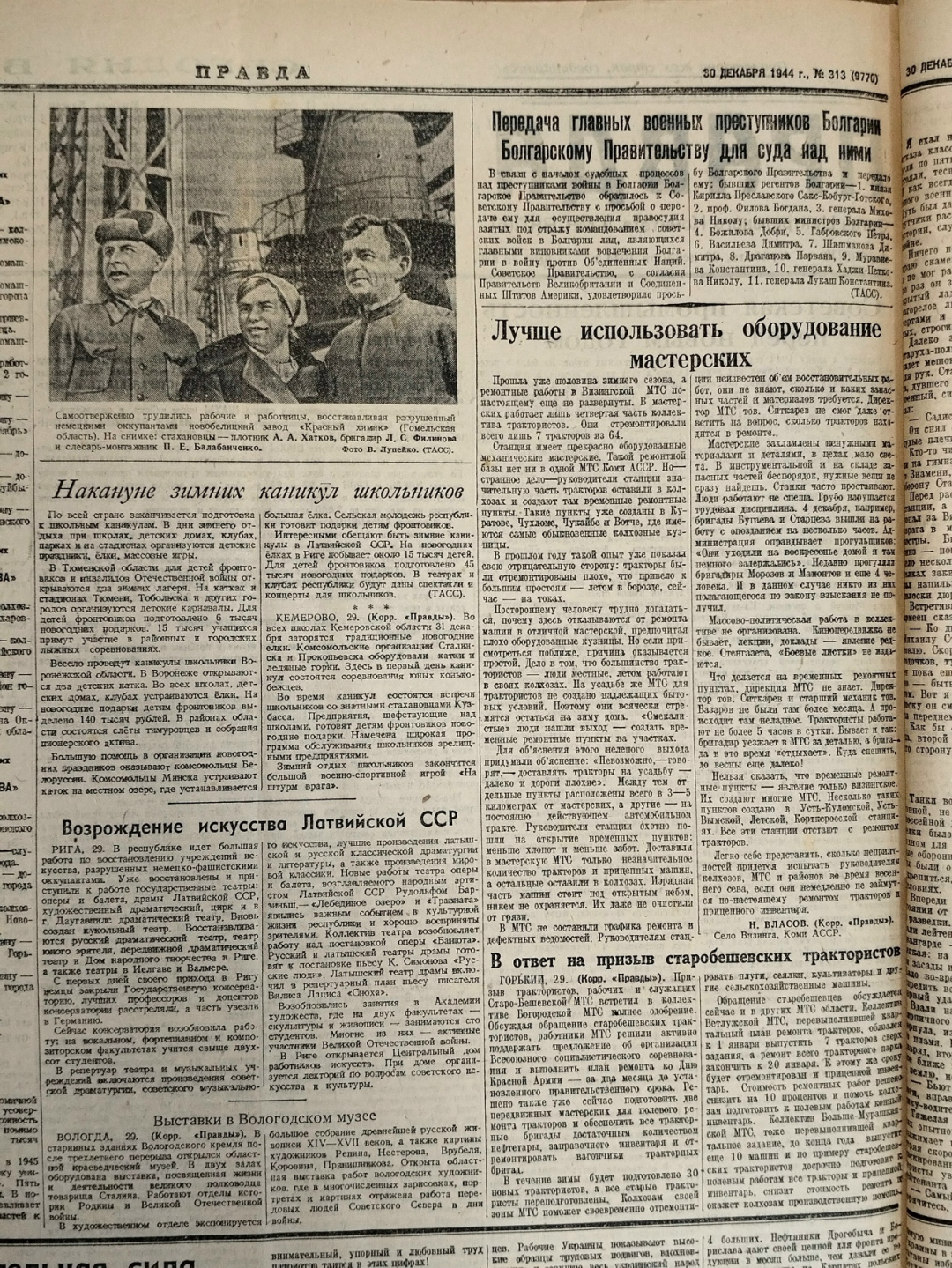 И с каждым годом их вера становилась всё сильнее! Новый 1945-й стал самым счастливым, потому что встретили его уже в ожидании великого торжества — окончания войны. На страницах газеты «Правда» от 1 января 1945 года читаем: «Мы горячо приветствуем Новый, 1945-й год. Нет сомнения в том, что ему суждено стать историческим годом. Мы ждём от него победного завершения войны с гитлеровской Германией и начала новой длительной эры мира...».