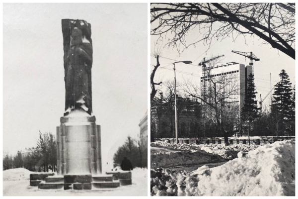 Фото сделано в 1956 году. На заднем фоне справа видно недавно построенное здание Обкома КПСС.