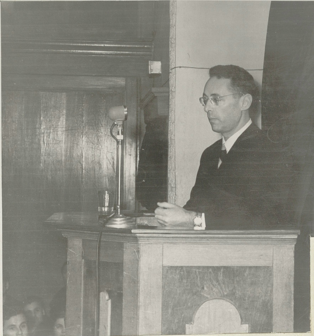 Диктор Всесоюзного радио Юрий Левитан выступает с публичной лекцией «У микрофона Москвы» в клубе Автозавода.