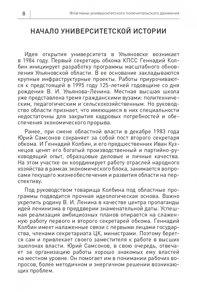 На прошлой неделе в УлГУ прошла торжественная презентация книги «Флагманы университетского попечительского движения». Ее автор первый ректор, а ныне президент вуза Юрий Полянсков. Издание вышло ограниченным тиражом и, чтобы как можно больше людей могли прочитать книгу, эксклюзивно на 73online.ru будут опубликованы все главы первого тома. Сегодняшняя посвящена первому секретарю обкома Юрию Самсонову. Он стоял у истоков создания филиала МГУ, а после организации Попечительского совета обеспечил системное пополнение его рядов руководителями крупнейших предприятий.