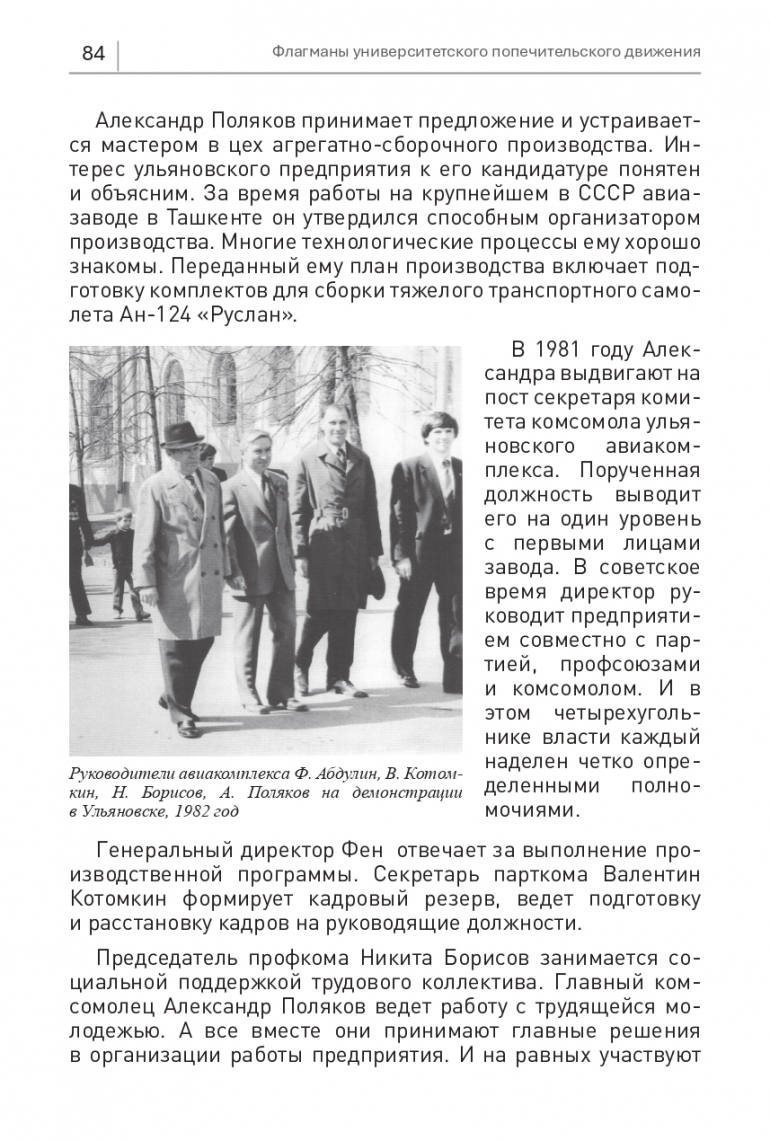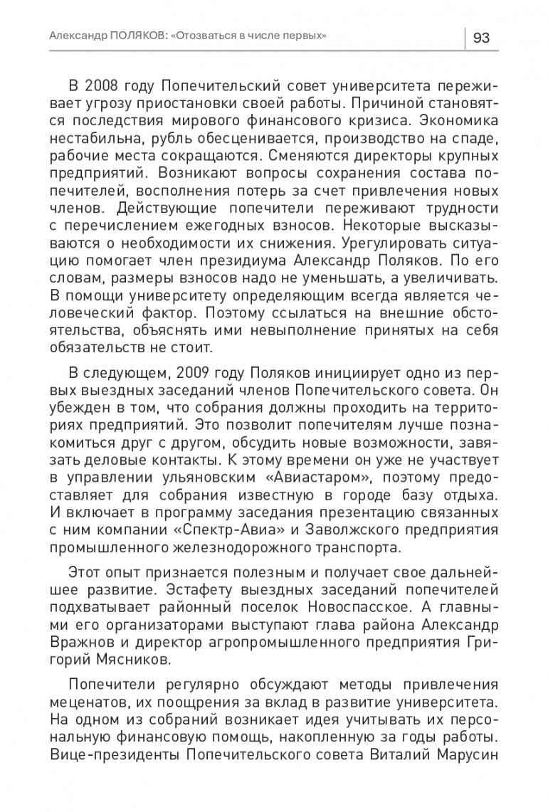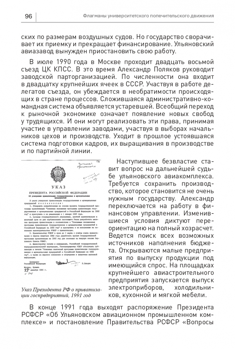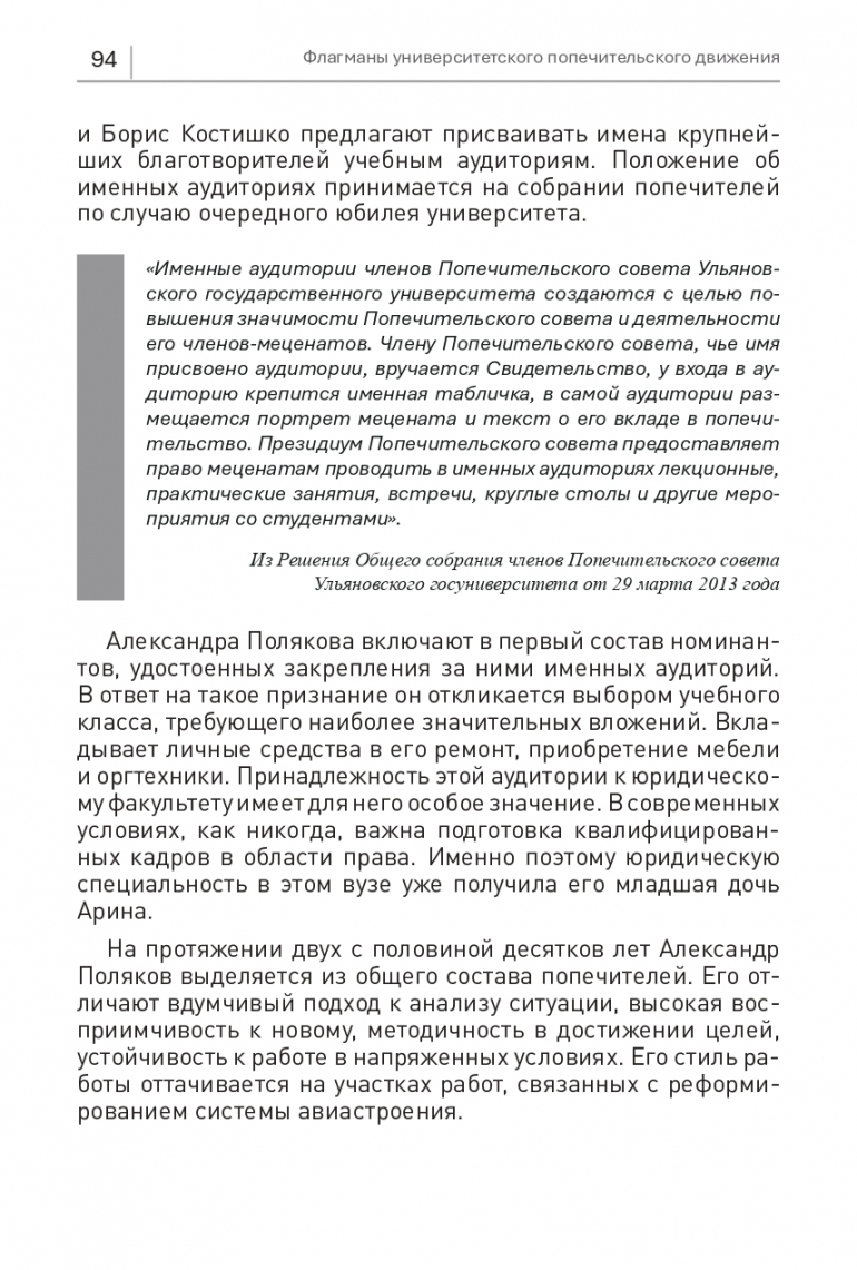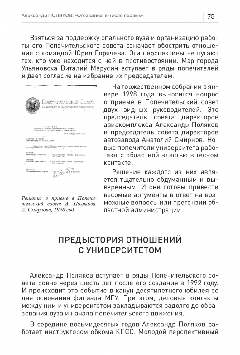УлГУ презентовал книгу «Флагманы университетского попечительского движения». Ее автор первый ректор, а ныне президент вуза Юрий Полянсков. Издание вышло ограниченным тиражом и, чтобы как можно больше людей могли прочитать книгу, эксклюзивно на 73online.ru будут опубликованы все главы первого тома. Сегодняшняя посвящена экс-председателю совета директоров ЗАО «Авиастар-СП» Александру Полякову.