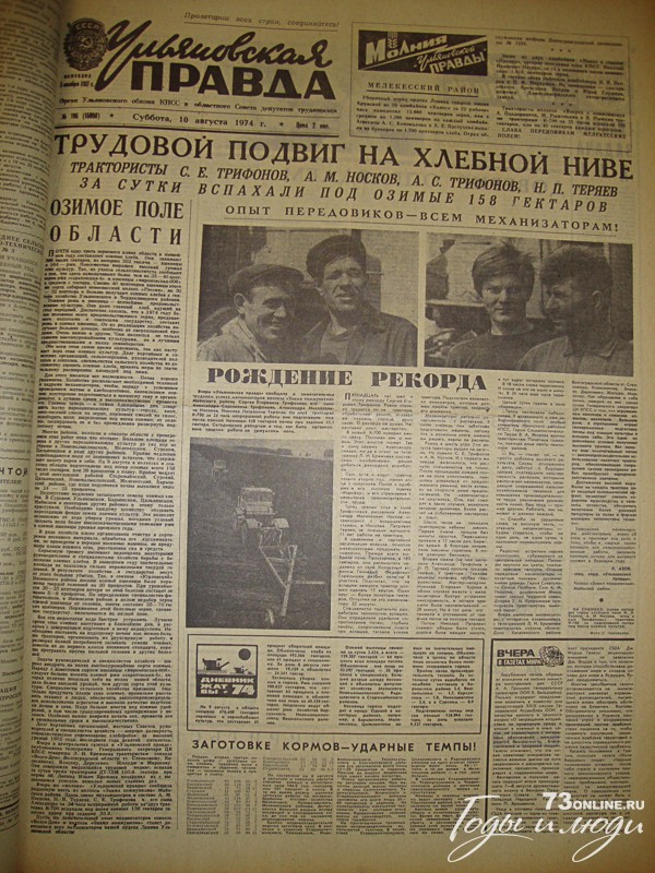 Трактористы С.У. Трифонов, А.М. Носков, А.С. Трифонов, Н.П. Теряев за сутки вспахали под озимые 158 гектаров. Опыт передовиков – всем механизаторам!