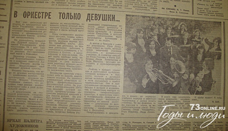 Издавна считалось, что игра на духовых инструментах – привилегия мужчин. Но руководитель духового оркестра Михаил Романович Филиппов считает, что девушки тоже вполне хорошо чувствуют себя в этой музыкальной сфере (...)