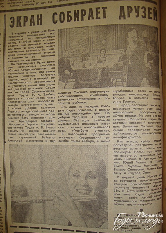 (...) По доброй традиции в первые минуты 1975 года знакомые музыкальные позывные известят о начале полюбившегося всем «Голубого огонька»