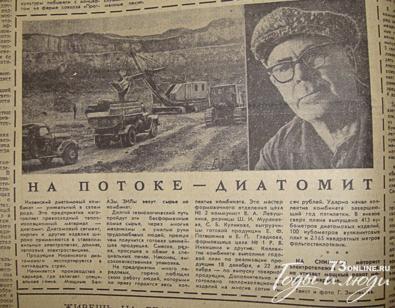 Инзенский диатомовый комбинат – уникальный в своем роде. Это предприятие изготовляет превосходный теплоизоляционный материал – диатомит. Диатомовый сегмент, кирпич и другие изделия широко применяются в сталеплавильных электропечах, домнах, тепловых электростанциях.