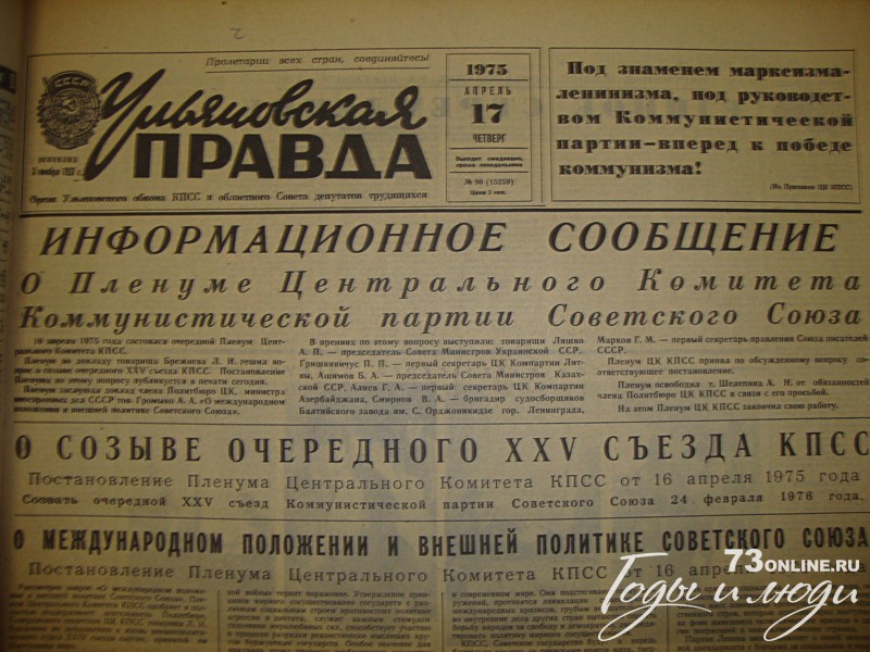 16 апреля 1975 года состоялся очередной Пленум Центрального Комитета КПСС.