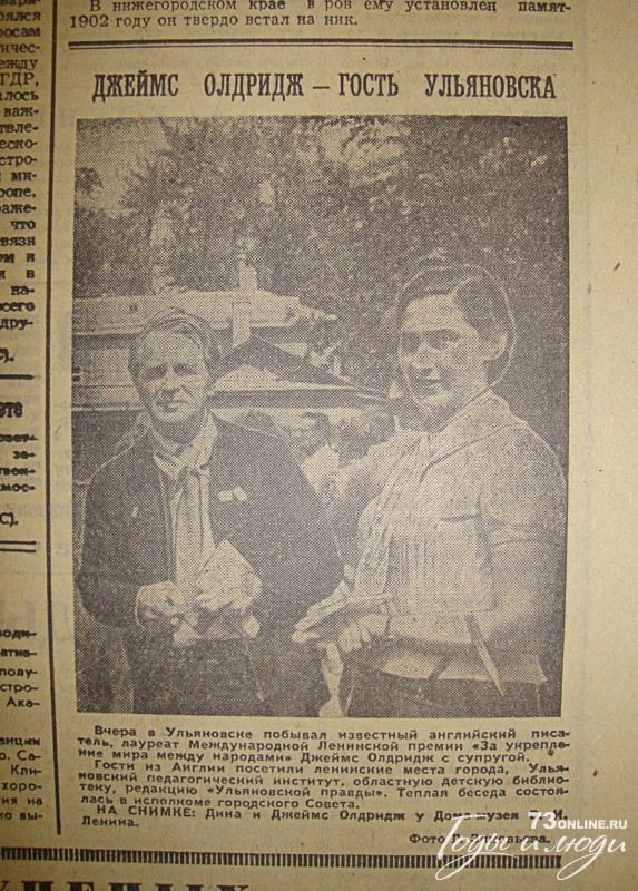 Вчера в Ульяновске побывал известный английский писатель, лауреат Международной Ленинской премии «За укрепление мира между народами» Джеймс Олдридж с супругой.