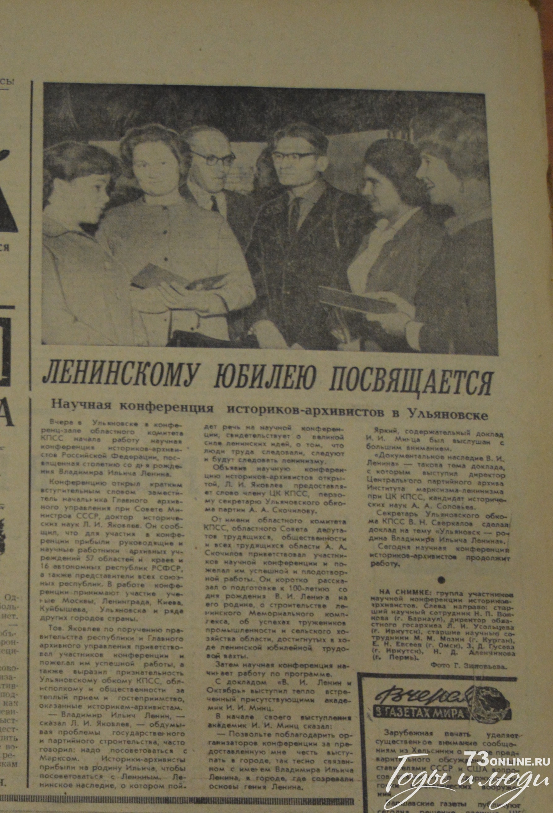 Вчера в Ульяновске в конференц-зале областного комитета КПСС начала работу научная конференция историков-архивистов Российской Федерации, посвященная столетию со дня рождения Владимира Ильича Ленина.
