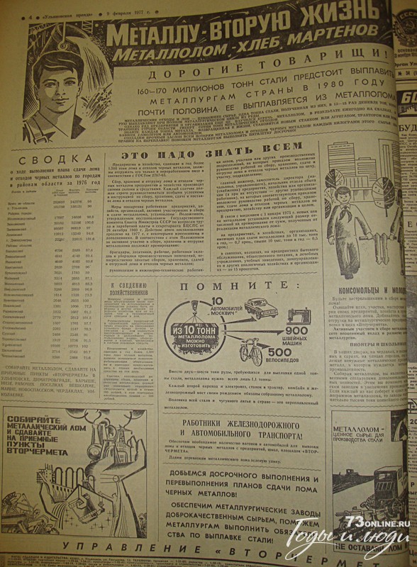 (...) Создадим прочный заслон потерям металлолома и отходов черных металлов! Каждый килограмм этого сырья отправим на переплавку!..