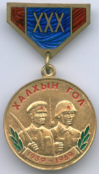 Правительство Монгольской Народной Республики, учитывая большие заслуги Советских Вооруженных Сил и монгольского народа в разгроме японских захватчиков, учредило медаль «30 лет победы на Халхин-Голе»(…)