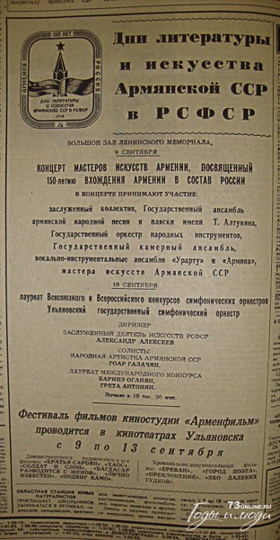 Концерт мастеров искусств Армении, посвященный 150-лети. вхождения Армении в состав России