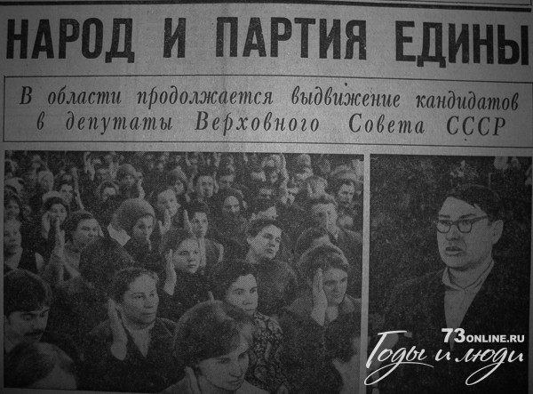 (...) Собрание рабочих, инженерно-технических работников и служащих бумажной фабрики имени Дзержинского единодушно приняло решение выдвинуть кандидатом в депутаты Верховного Совета СССР по Новоспасскому избирательному округу № 330 Кузнецова Ивана Максимовича, первого секретаря Ульяновского обкома КПСС (...)