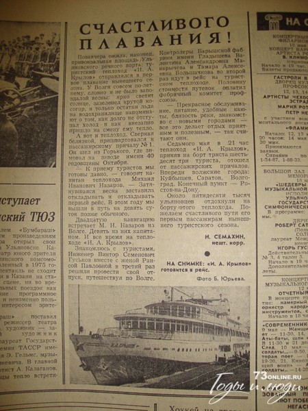 Около пятидесяти тысяч ульяновцев отдохнули на борту этого теплохода. Пожелаем счастливого пути его первым пассажирам нынешнего туристского сезона.