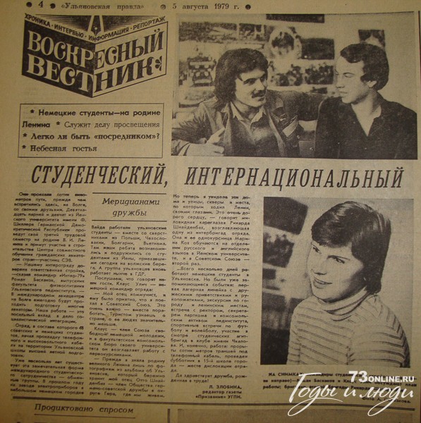 - Нашему интеротряду доверена ответственная стройка, - сказал командир «Интер-79» Роман Баскаков, выпускник факультета физвоспитания Ульяновского пединститута. – В международном авиацентре на Волге ежегодно будут проходить подготовку многие авиаторы. Наша работа – это посильный вклад в дело социалистической интеграции.