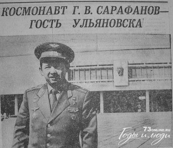 Несколько дней гостит в Ульяновске летчик-космонавт СССР Герой Советского Союза Г.В. Сарафанов, участвующий в работе Всесоюзного совещания начальников политорганов, идеологического актива Министерства внутренних дел СССР.