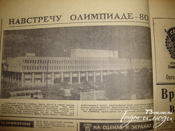 … Зубовский бульвар столицы. Здесь, почти в самом центре Москвы, возводится здание главного пресс-центра Игр XXII Олимпиады. В Доме прессы создается максимум удобств для журналистов и фотокорреспондентов. На первом этаже – специальный блок аккредитации, тут же – помещение для представителей Оргкомитета, МОКа, Пресс-боксы, библиотека, переговорный пункт, телеграфный узел, телетайпы, телексы и многое другое (…)