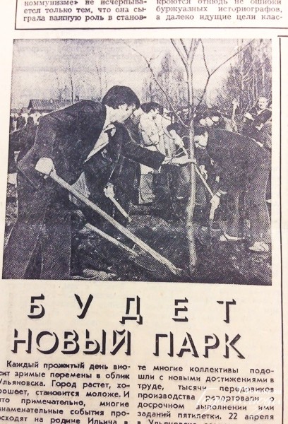 (...) Вчера в городе состоялась торжественная закладка парка имени И.Н. Ульянова (...) В субботнике на месте будущего парка приняло участие свыше полутора тысяч ульяновцев.