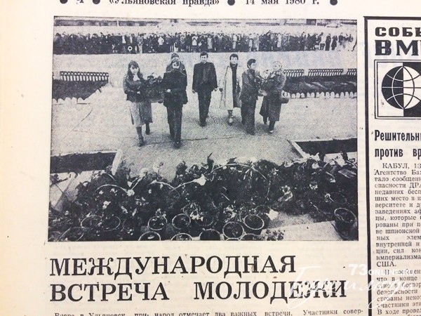 Вчера в Ульяновск прибыли участники Международной встречи молодежи, посвященной 110-й годовщине со дня рождения В.И. Ленина. Интернациональный поезд, в котором находились делегации ГДР, Венгрии, Чехословакии, Болгарии, Польши встречал комсомольский актив города. На привокзальной площади состоялся митинг дружбы, который открыл секретарь горкома ВЛКСМ В. Подсевалов (...)