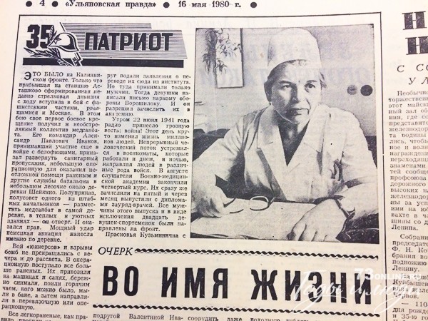 ...Поступая в 1937 году, после окончания десятилетки в г. Мелекессе, в Куйбышевский медицинский институт, П.К. Чучкалова, как и ее сверстницы, не предполагала, какие черные тучи начинают сгущаться над страной. Но уже в 1939 году это почувствовали многие. В Куйбышеве организуется Военно-медицинская академия. Прасковья Кузьминична и несколько ее подруг подали заявления о переводе их сюда из института. Но туда принимали только мужчин. Тогда девушки написали письмо наркому обороны Ворошилову. И он разрешил зачислить их в академию.
