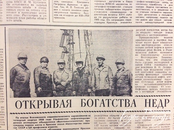 По итогам Всесоюзного социалистического соревнования за четвертый квартал 1980 года Ульяновской нефтегазоразведочной экспедиции объединения «Волгокамскгеология» присуждены первое место и Красное знамя Министерства геологии СССР и ЦК профсоюза отрасли.