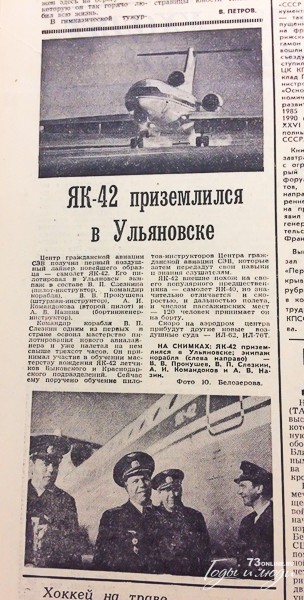 Центр Гражданской авиации СЭВ получил первый воздушный лайнер новейшего образца – самолет ЯК-42 (…) Командир корабля В.П. Слезкин одним из первых в стране освоил мастерство пилотирования нового авиалайнера и уже налетал на нем свыше 300 часов (…)