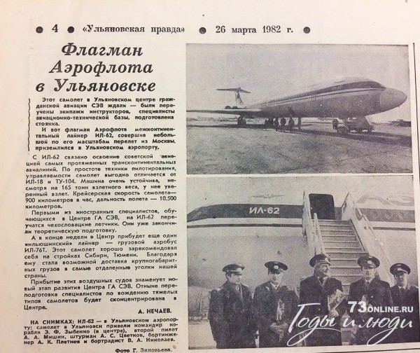 И вот флагман Аэрофлота межконтинентальный лайнер ИЛ-62, совершив небольшой по его масштабам перелет из Москвы, приземлился в Ульяновском аэропорту.