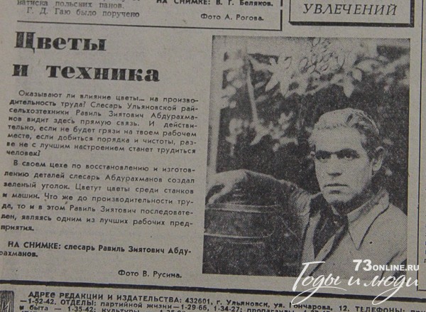 Оказывают ли влияние цветы… на производительность труда? Слесарь Ульяновской райсельхозтехники Равиль Зиятович Абдурахманов видит здесь прямую связь. И действительно, если не будет грязи на твоём рабочем месте, если добиться порядка и чистоты, разве не с лучшим настроением станет трудиться человек?