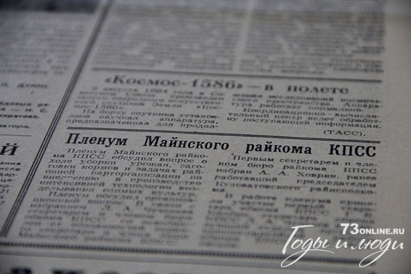 (…) Пленум обсудил организационный вопрос. В связи с избранием Л.А. Чеченева секретарем и членом бюро обкома КПСС он освобожден от обязанностей первого секретаря и члена бюро Майнского райкома КПСС.